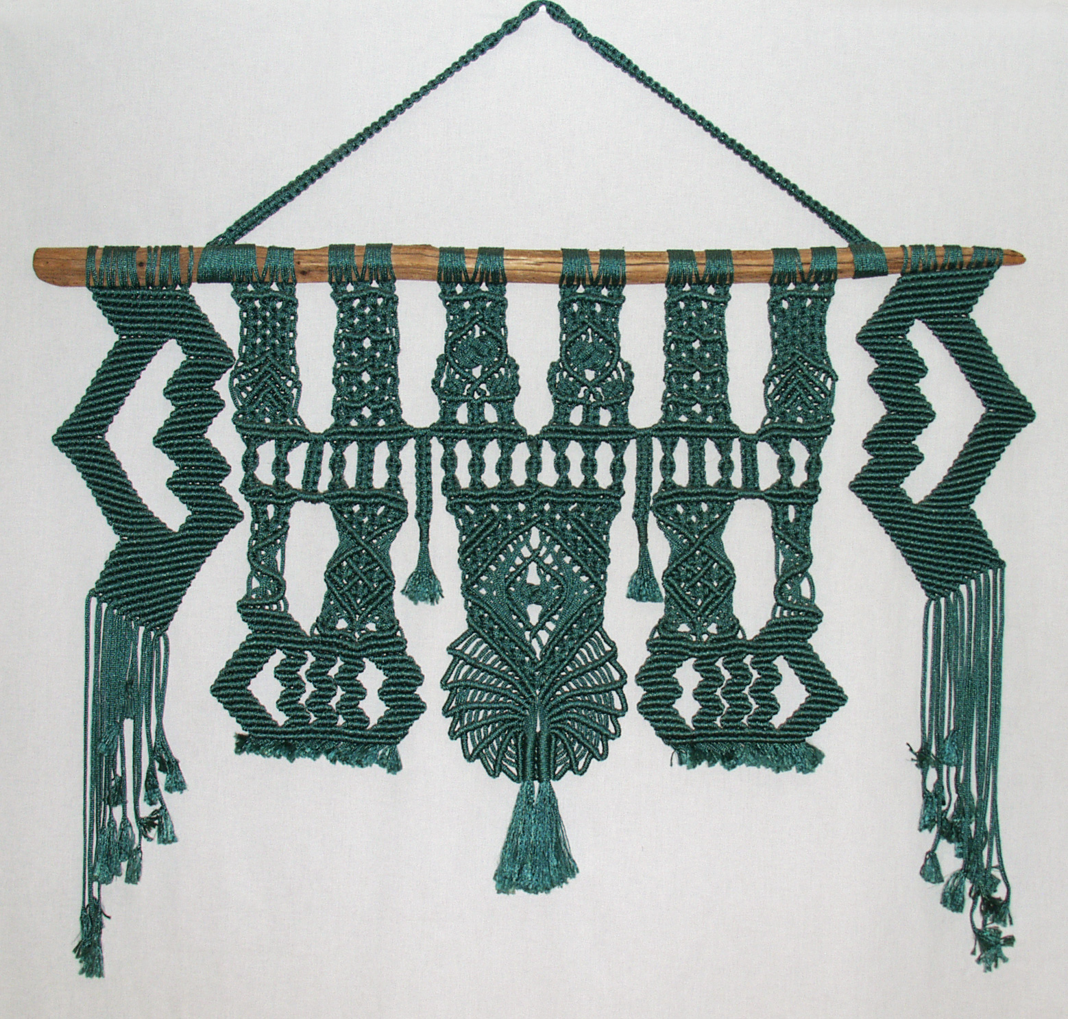 Wallhanging made with forest green nylon.