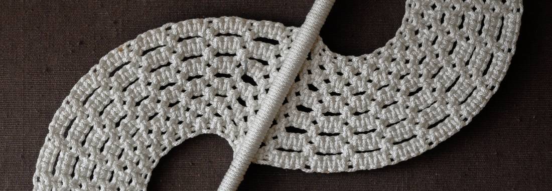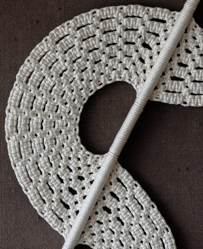 By adding an extra knot for each column in a row I could create a curve pattern. It can be hung as a portrait or landscape.